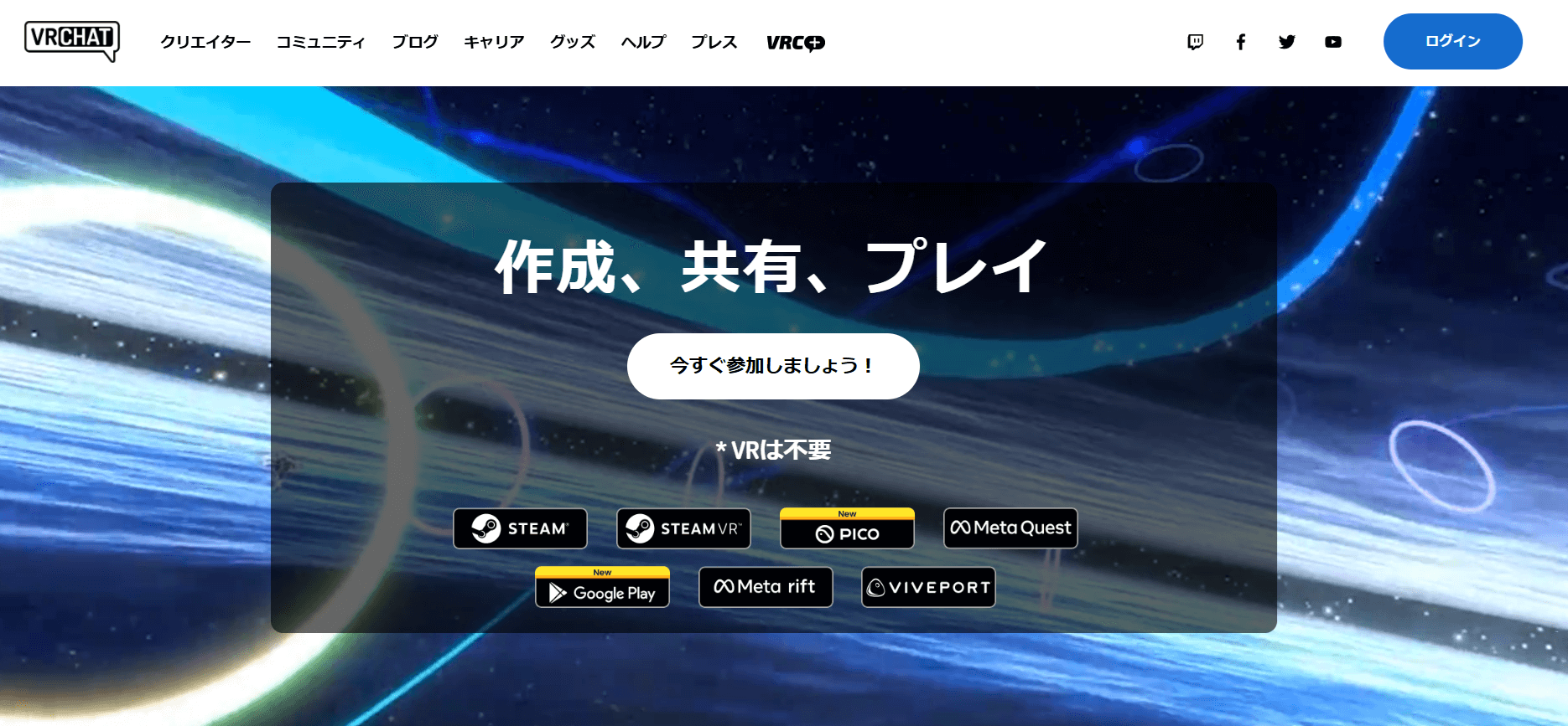 VRChatは、仮想空間で自由な交流やコンテンツ作成を楽しめるソーシャルVRプラットフォームです。ユーザーはアバターを作成し、他のユーザーとコミュニケーションを取ったり、ゲームやイベントに参加したりできます。特徴は、ユーザーが自作したワールドやアバターを活用できるカスタマイズ性の高さで、初心者からクリエイターまで幅広い層に利用されています。